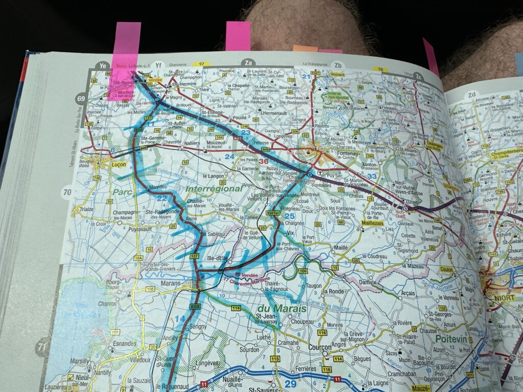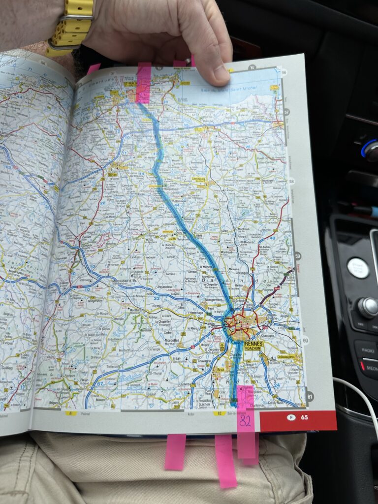 The journey from St Malo to the island was long but fun. We used a road atlas to plot our route and other than a couple of missteps (where Waze thought it was optimising but didn’t know we were very wide) we made it to the site at around 3pm.