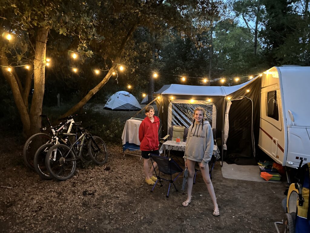 As part of our summer Tour De France we are spending 8 nights on Ile d’Oleron. We have a pitch among the trees and managed to squeeze the caravan tightly along one side leaving a nice front garden area.
