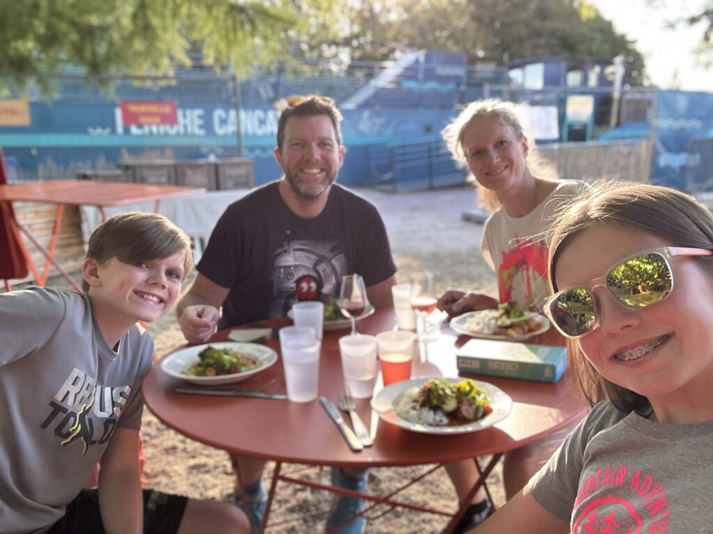 The site was on the river so we cycled up a short way to the lake and went for a swim and an icecream by the “beach”.
