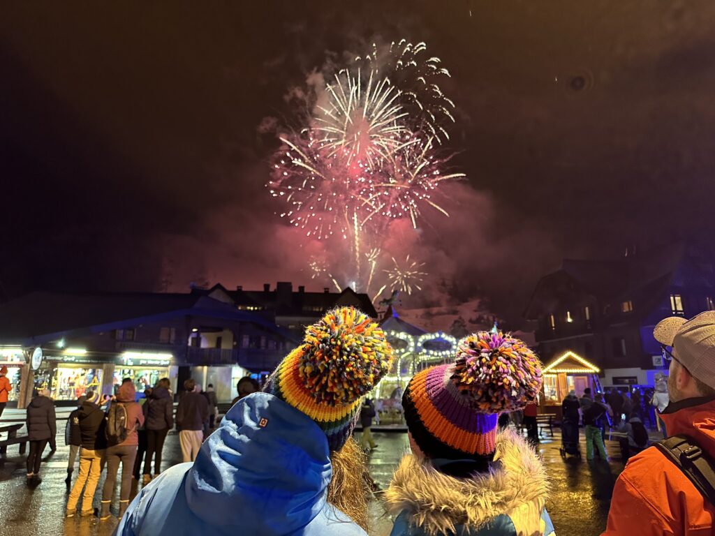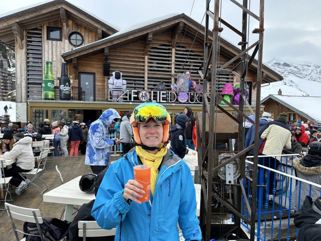For the 2nd week, we were joined by the Colemans and Rees’ and the Rees’ usual ski group and even though we didn’t manage to ski very much together, we did have a great afternoon Apres at Le Follie Douce and again a lovely evening at the Rees’ place for New Years Eve.