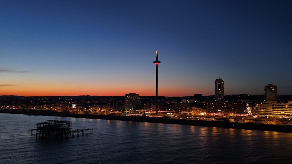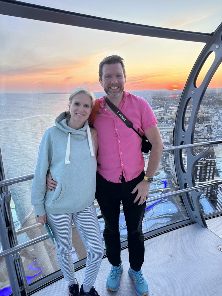 For the tourist thing, we booked to go up the Brighton i360 Europes tallest moving viewing platform (apparently). We got tickets for the last assent of the day so we could see the sun setting.